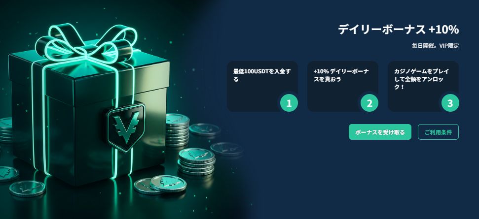 デイリー入金カジノボーナス|毎日+10% (VIP限定)