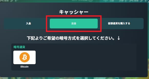 開いたキャッシャー画面で「出金 (Withdraw)」タブをクリックし、出金画面に切り替えます。