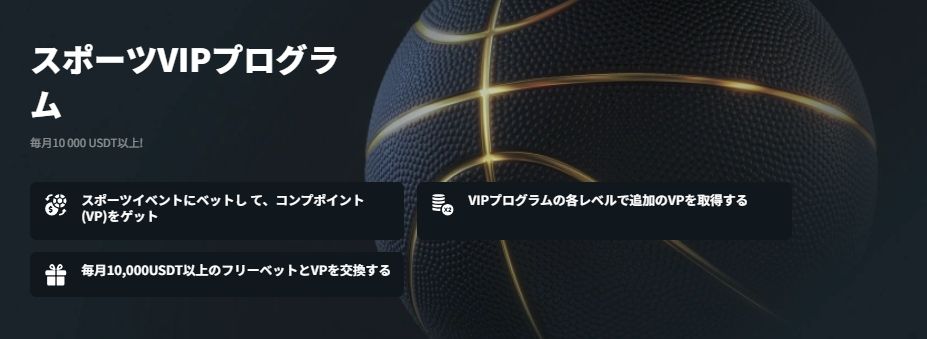 | スポーツVIPプログラム | 毎月10,000 USDT以上 | スポーツ |