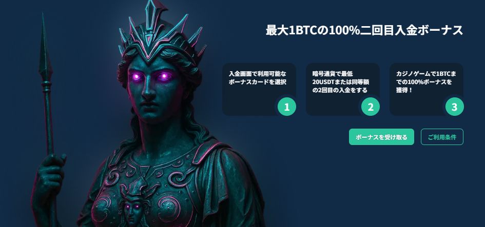 | 2回目入金ボーナス | 100%・最大1 BTC | カジノ |