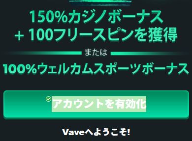 ✓ これでVaveカジノのアカウント登録は完了です!